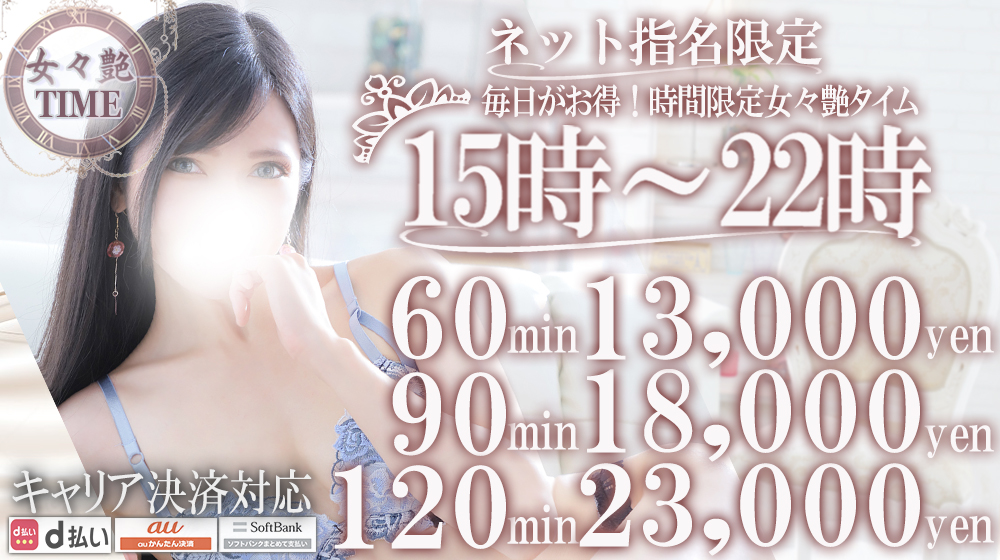 ネット指名料¥2,000OFFおまけにコース料金から¥1,000引きの最大¥3,000OFFでご案内しちゃいます♪